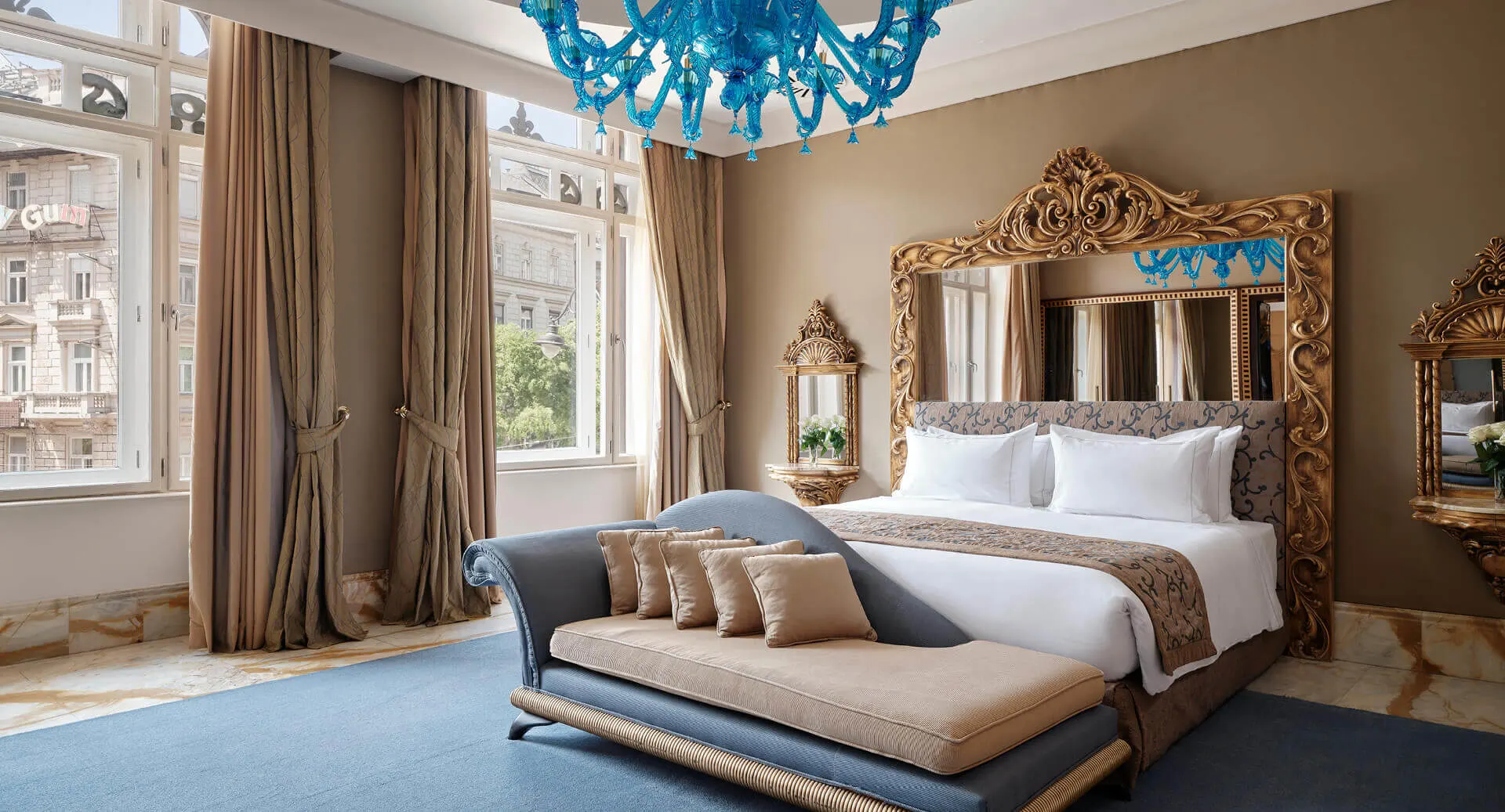• Anantara New York Palace Budapest: εμβληματικό νεομπαρόκ κτίριο, συνδυάζει ιστορική μεγαλοπρέπεια με σύγχρονες ανέσεις.